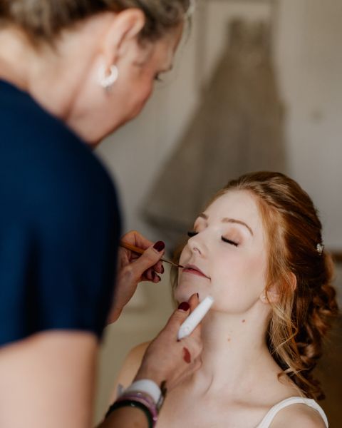 Ja natürlich. Ich style gerne auch Ihre Lieben am Tag der Hochzeit. Hier müssen wir nur auf den Zeitplan schauen, damit auch alle rechzeitig fertig sind. Für die Gäste ist es natürlich auch schön, denn sie müssen nicht extra zum Friseur, sondern können sich ganz entspannt herrichten lassen. Für ein Gästestyling mit Makeup und Frisur plane ich etwa eine Stunde ein.
