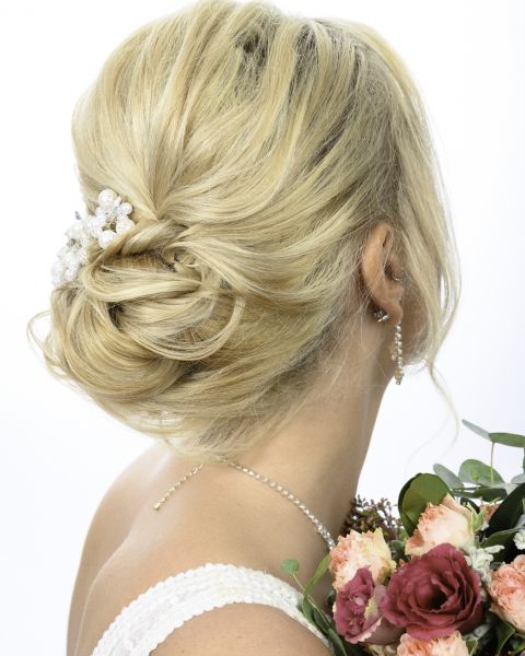 Vor dem eigentlichen Probetermin haben Sie mir schon Ihre Vorstellungen gesagt oder mit Bildern gezeigt. Die Bilder dienen nur als Anhaltspunkt. Am Probetermin selbst besprechen wir Ihre Wünsche und setzen sie, soweit es möglich ist um und finden das für Sie perfekte Styling. Vorteilhaft ist es, wenn Sie schon wissen, wie Ihr Brautkleid aussehen wird und welchen Haarschmuck Sie möchten. Bei Blumen ist es gut wenn Sie bereits wissen, welche es werden sollen. Ich habe auch immer Haarschmuck da, damit wir verschiedene Möglichkeiten haben und für Sie das Beste aussuchen.